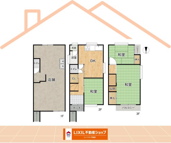 【外観】1階は元店舗、2~3階が居住スペースとなっています。