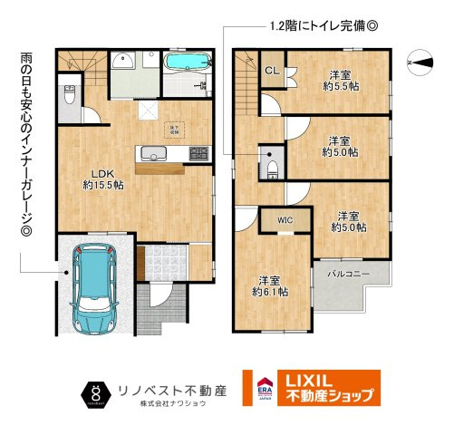 【外観】2025年7月完成の新築戸建て全2棟! 1台分のインナーガレージ完備で雨の日も安心♪