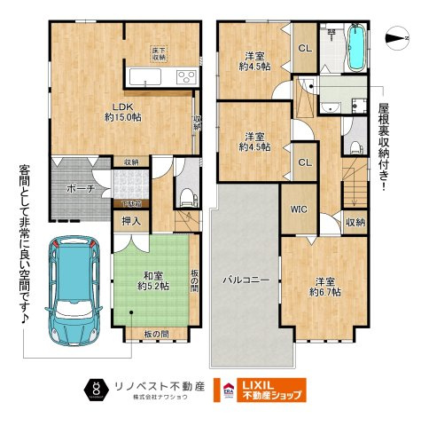 【外観】2026年3月リフォーム済みでお洒落な内装♪ 前道が約5.7mと広々としており、車の出し入れも楽々◎