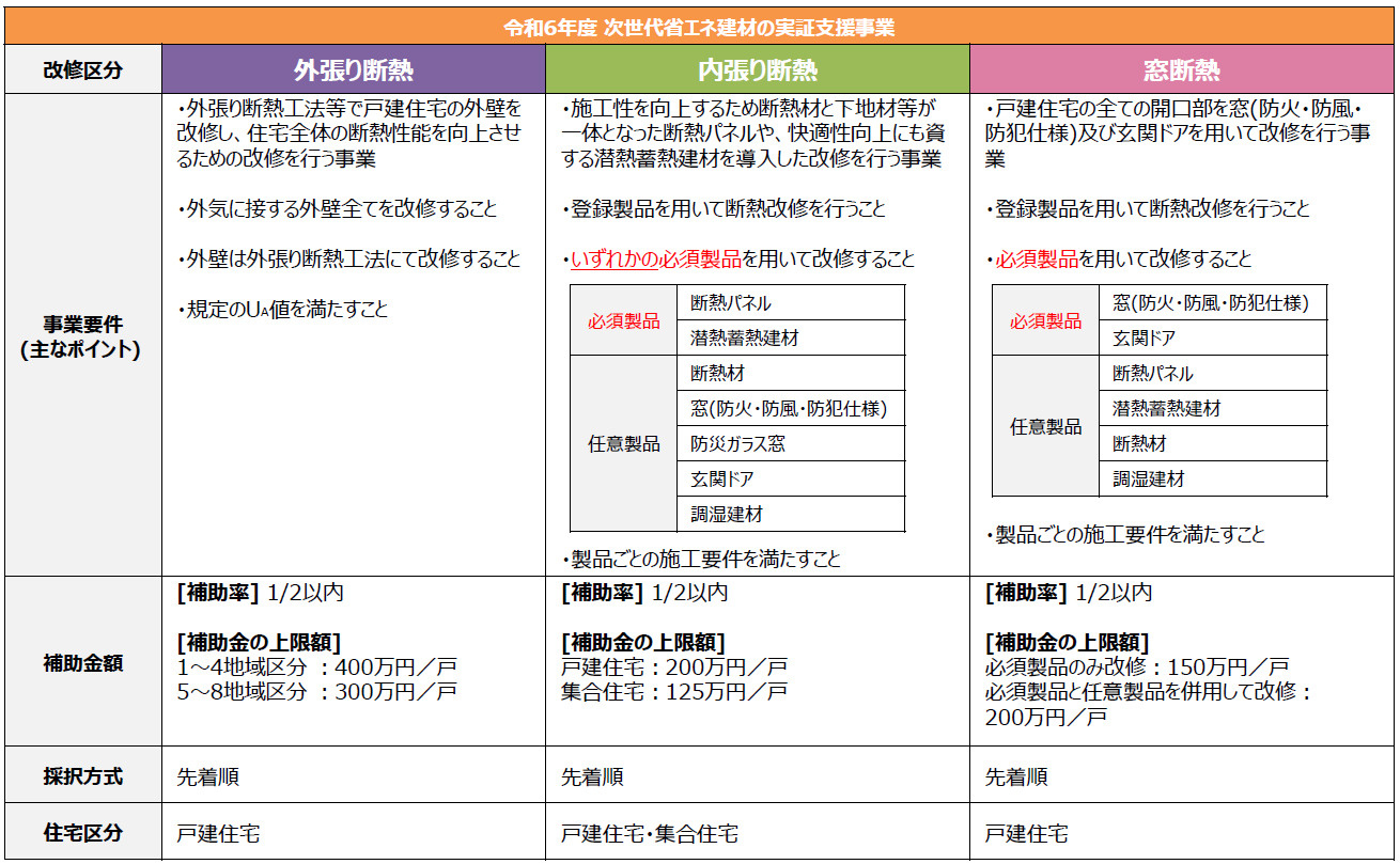概要:既存住宅における消費者の多様なニーズに対応することで省エネ改修の促進が期待されると工期短縮可能な高性能断熱材や、快適性向上にも資する蓄熱・調質材等の次世代省エネ建材の効果の実証を支援する。